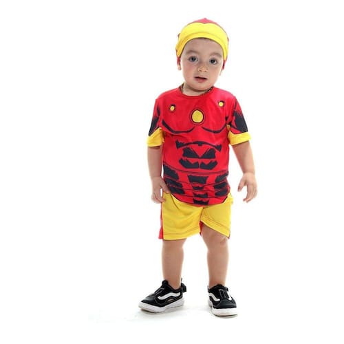Fantasia Homem De Ferro BebêPreço por fantasia.Tamanhos (manequim-altura da criança):- P (12 a 18 meses - 70 a 79 cm);- M (18 a 24 meses - 80 a 89 cm).A fantasia é composta por:- Macacão Curto; e- Touca.Especificações técnicas:- Personagem: Homem de Ferro- Tecido: 100% Poliéster- Produto licenciado