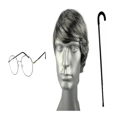 Contém: 01 unidade peruca sintética grisalha escura curta, 01 Oculos Metal e 01 BengalaPerucaCor: grisalhaModelo: curta Tamanho: únicoCaracterísticas geraisProduzida com cabelo de fibra sintética