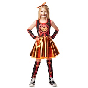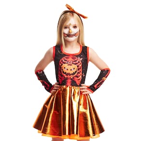 Esteja pronta para uma noite de magia e diversão! Aproveite esta oferta especial e adquira agora mesmo a Fantasia Infantil Esqueleto Sra. Abóbora Halloween Menina. Deixe as meninas brilharem com essa fantasia única e cheia de encanto halloweenesco!