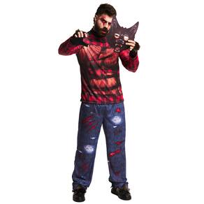 Estampa de Lobo com Arranhões e Detalhes de Ferimentos: O conjunto é estampado com detalhes realistas de um lobo, incluindo arranhões e detalhes de ferimentos, criando uma aparência aterrorizante e autêntica.