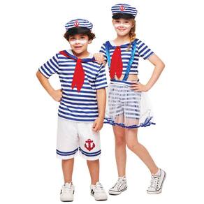 Deixe a imaginação da sua pequena marinheira navegar com a Fantasia de Marinheira Infantil, composta por uma blusa cropped, shorts, saia com suspensório e um quepe. Sua pequena estará pronta para explorar os sete mares da diversão durante o Carnaval!