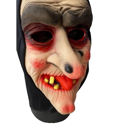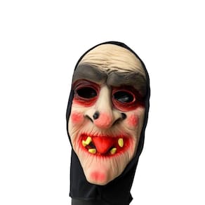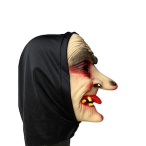 A Máscara Bruxa com Capuz é terrível. É ideal para brincar no Carnaval ou para uma festa a fantasia. A Máscara Bruxa com Capuz cobre a cabeça inteira pois tem um capuz na parte de trás, tem um nariz muito grande e uma boca temerosa.