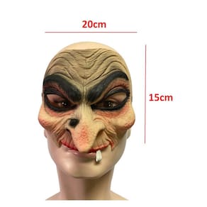 Material: látex Cor: bege Tipo de cobertura: metade Rosto Idade: Adultos Medida Aproximada do Produto: altura 15cm x Largura 20cm (possui elástico) Tamanho único para uso em adultos porém, serve também para algumas crianças maiores de 8 anos desde que seja com o consentimento dos pais.