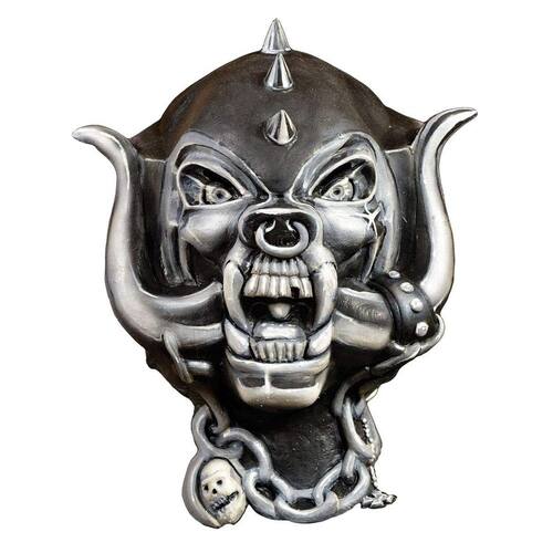 A Trick or Treat Studios e a Global Merchandising Services têm o orgulho de apresentar, pela primeira vez, a máscara Motörhead Warpig oficialmente licenciada. Esculpida por Rick Fisher, essa máscara captura o logotipo característico da banda, com suas enormes presas, correntes e pontas de javali, que foi originalmente criado pelo artista Joe Petagno em 1977 para a capa do álbum Motörhead e apareceu em muitas variações nas capas dos álbuns seguintes. O rosto com presas foi chamado de Warpig e Snaggltooth e esta é a primeira máscara oficial. Então compre o Motörhead Warpig e arrase neste Halloween!