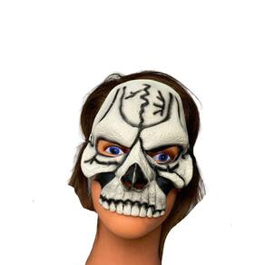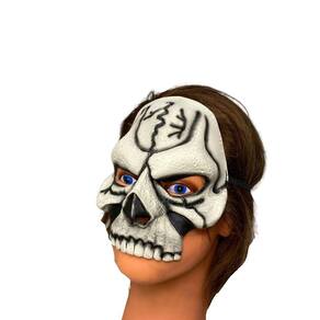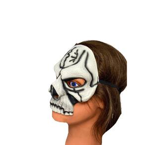 A Meia Máscara Caveira é realista. É ideal para brincar no Carnaval ou para uma festa a fantasia. A Meia Máscara Caveira cobre a metade da face e é presa atrás da cabeça com um elástico, possui pintura bem viva, super indicada para complementar fantasias de carnaval. Cor: Branco e preto