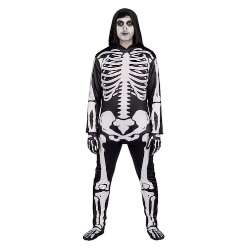 - O TRAJE INCLUI: macacão com capuz de peça única com estampa esquelética.