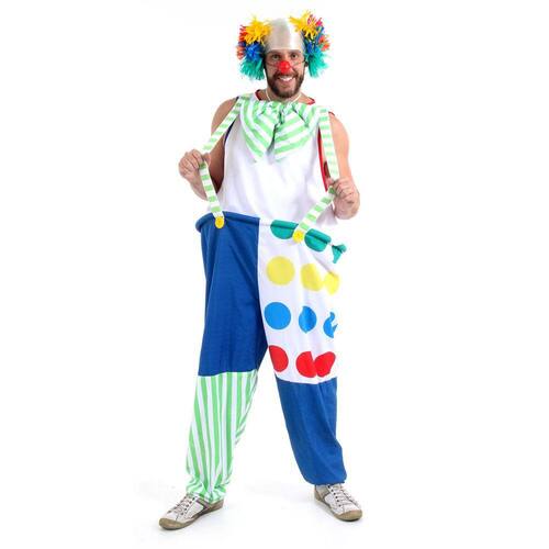 Macacão: Vista-se com o charme tradicional do palhaço em um macacão longo com banbole na cintura, garantindo um visual animado e descontraído.