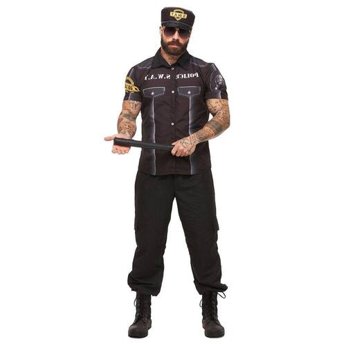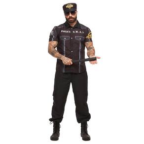Detalhes Realistas: Camisa estampada e quepe SWAT para um visual autêntico.