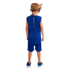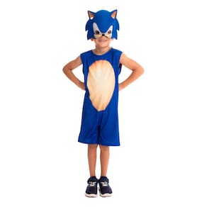 O que acompanha: Macacão curto azul inspirado no Sonic Máscara do personagem para completar o visual