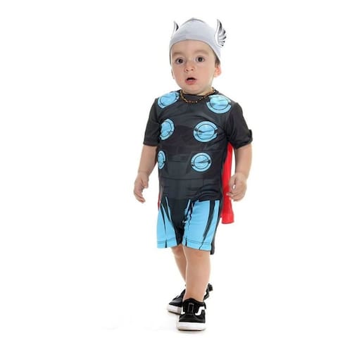 Fantasia Thor Macacão Bebê - OriginalPreço por FantasiaModelo: Thor BebêTamanhos (manequim-altura da criança):- P (12 a 18 meses - 70 a 79 cm);- M (18 a 24 meses - 80 a 89 cm).A fantasia é composta por• Macacão Curto C/ Capa Acoplada; e• Touca.Especificações técnicas• Personagem: Thor• Tecido Macacão: 100% Poliéster• Tecido Touca: 100% Poliéster
