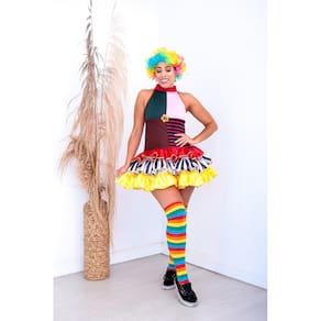 Fantasia Vestido Palhaça Adulto Feminina Carnaval Halloween Zumbi Terror Festa Circo - M - Sortido