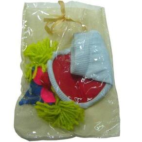 Confeccionado em ;feltro, algodão ;e tecidopluminha ;com ;cores vivas e acessórios.