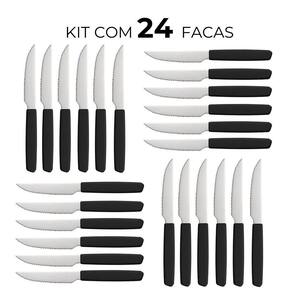 Jogo de 6 Facas Cabo Preto de Plástico Berlim 20cm Em Casa Tem