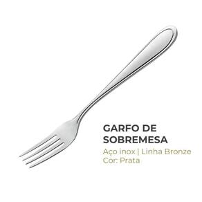 Jogo 6 Garfos de Sobremesa Prata Inox Em Casa Tem Linha Bronze 17cm