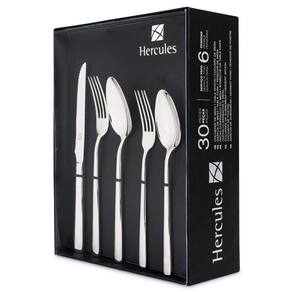 Faqueiro 30 Peças de Aço Inox com Estojo de Papelão Hercules MykonosA sofisticação Hercules pode chegar até sua mesa com o novo Faqueiro Mykonos. Acompanha utensílios indispensáveis para ajudar você a servir seus convidados com um toque ainda mais especial. Os Talheres possuem acabamento em Aço Inox 18/10. Talheres que garantem maior durabilidade no fio de corte, e por suas características de temperabilidade, não riscam as porcelanas. Acabamento em alto brilho e design contemporâneo. Com Lâmina temperada, ergonômico, cabos maciços e acabamentos entre os dentes. Podem ser lavadas diariamente na máquina de lavar louçasContém: 6 Colheres de Mesa / 6 Garfos de Mesa / 6 Facas de Mesa / 6 Colheres de Sobremesa / 6 Garfos de SobremesaCor: PrataMaterial: Aço inoxMedidas da embalagem: 28cm Comp. X 8cm Alt. X 22cm Larg.Peso: 2,56kg