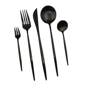 Faqueiro 30 Peças Em Inox Berlin Kenya Preto Seja em ocasiões informais ou em jantares mais formais, esse Faqueiro em Aço Inox Berlin com 30 Peças se destaca pela sua versatilidade. Sua variedade de utensílios, desde facas até colheres de sobremesa, atende a todas as necessidades culinárias, proporcionando uma experiência de refeição completa e refinada.O Faqueiro em Aço Inox Berlin com 30 Peças da marca Kenya, representa muito mais do que um simples conjunto de talheres. Ele é uma declaração de estilo, qualidade e funcionalidade, que irá elevar a experiência de refeição em seu lar a novos patamares de sofisticação e satisfação.Especificações do Produto:- Design moderno diferenciado- Perfeito para o dia a dia ou ocasiões especiais- Peças projetadas com formato confortável para proporcionar um manuseio preciso e seguro- Facilidade de limpeza, o produto pode ir a lava louçasFicha Técnica:- Código: 4083210004- Marca: Kenya- Material: Aço Inox- Cor: Preto- Peso: 820g- Conteúdo da Embalagem: 6 Garfos, 6 Colheres de Sopa, 6 Facas, 6 Garfos de Sobremesa e 6 Colheres de Sobremesa- Dimensões da Embalagem: 25,8cm x 18,5cm x 6,2cm (AxLxP)- Garantia: 3 Meses (Contra defeito de fabricação) Sobre a Marca - A marca brasileira Kenya oferece produtos com ótima relação custo-benefício para os principais ambientes da casa, com seu portfólio dividido em Mesa, Vinho e Bar. Simplicidade e elegância são características fundamentais da marca, que traz em cada coleção de produtos para cozinha, banheiro, lavanderia, organização, entre outros, as novidades alinhadas com as últimas tendências do mercado internacional.