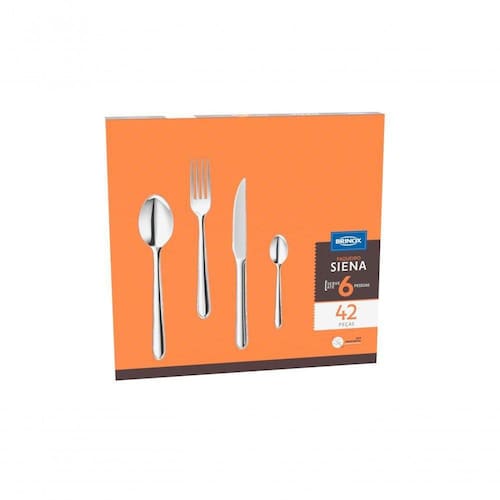 Faqueiro 42 Peças - Siena - Brinox A rotina diária precisa ser prática. A versatilidade da linha Siena é uma aliada para tornar as refeições rápidas do cotidiano muito mais prazerosas. Fabricados no Brasil, com aço inox, os utensílios têm acabamento polido e detalhe no cabo. Este faqueiro de 42 peças contém talheres para servir uma refeição a seis pessoas: colheres, garfos e facas de mesa, colheres e garfos de sobremesa, colheres de chá e de café. Todos os produtos podem ir à lava-louças.Acabamento vibradoFacas com polimento extra brilhoEspessura: 1,5 mm da facaEspessura: 1 mm do garfo e colher Material - Aço Inox Linha - Siena Composição - 06 Colheres de Mesa06 Garfos de Mesa06 Facas de Mesa06 Colheres de Sobremesa06 Garfos de Sobremesa06 Colheres de Chá06 Colheres de Café Garantia - 90 dias para vícios ou defeitos de fabricação. Conteúdo Especial -