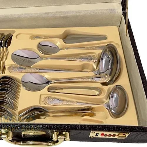 Faqueiro 84 Pçs Banhado Ouro 24k Faqueiro Inox Luxo 84 Peças Dourado com Maleta Peças em Aço Inoxidável 18/10 3.0mm de espessura com filetes dourados, design exclusivo e sofisticado Faqueiro leva charme, elegância e bom gosto para a composição da sua mesa.Um faqueiro clássico produzido em aço inox, ricamente adornado e exclusivo.Todas as peças são produzidas em aço inoxidável.Apresentam espessura de 3mm e acabamento espelhado.Caixa produzida no estilo maleta reforçada com fechamento em sistema de código. 01 Maleta com:12 Colheres12 Garfos principais12 Facas principais12 colheres chá/sobremesa12 Garfos sobremesa01 Espátula pata bolo02 Garfos peixe01 Concha grande01 Concha pequena01 Colher açucareiro01 Pegador02 Colheres para servir02 Colheres de salada Garantia 1 ano.