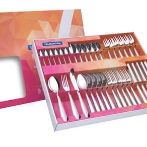 66906/794ConteúdoTalheres de aço inox. 06 un - Colher de mesa06 un - Garfo de mesa06 un - Faca para churrasco06 un - Colher para chá06 un - Colher para café06 un - Garfo para tortaOrientações GeraisUse apenas sabão ou detergente e uma esponja macia. Outros tipos de produtos, como palha de aço, poderão riscar ou prejudicar o brilho dos talheres. Enxágue bem cada peça a fim de remover totalmente os resíduos dos produtos de limpeza, que, por serem abrasivos, podem atacar o inox. Sempre que possível, use água quente, pois renova o brilho do talher. Após a lavagem, enxugue imediatamente os talheres, caso contrário, as substâncias químicas da água (cloro) poderão causar manchas. Evite atrito entre os talheres durante o processo de lavagem e no armazenamento, para mantê-los sem riscos. Evite o contato das peças com superfícies quentes. Elas provocam a descoloração do produto. Não guarde os talheres em locais úmidos. A umidade também provoca manchas.Qualquer faca, independentemente de marca, para manter o fio de corte, é fabricada em aço com maior teor de carbono e, por isso, é menos resistente à corrosão. Assim, pedimos uma atenção especial para este artigo, pois estará mais propenso aos problemas citados. Usando máquina de lavar louças Não carregue em demasia a cesta dos talheres. Separe bem as peças, pois o contato permanente entre as mesmas, durante a secagem, poderá causar manchas. Retire os talheres logo que tenha terminado o ciclo"enxaguar", a fim de que os mesmos sejam secados manualmente.Benefícios do Produto1. As peças são acondicionadas em uma bela embalagem. 2. Totalmente feitas de aço inox, altamente duráveis, mantêm suas características originais, preservando a beleza, a higiene e a durabilidade do material. 3. Colheres com bojo em formato simétrico ebordas cuidadosamente arredondadas. 4. Garfos com dentes polidos na parte interna, com formato apropriado para a boca e bordas arredondadas para proporcionar maior conforto no uso. 5. Facas totalmente temperadas, que garantem maior durabilidade no fio de corte e maior resistência à corrosão, e por suas características de temperabilidade, não riscam as porcelanas. 6. Acabamento em alto brilho. 7. Serviço para 06 pessoas. 8. Podem ser lavadas diariamente na máquina de lavar louças.
