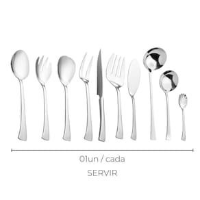 Cada peça é meticulosamente confeccionada em aço inox, apresentando um design sofisticado que se destaca pela durabilidade e brilho duradouro.