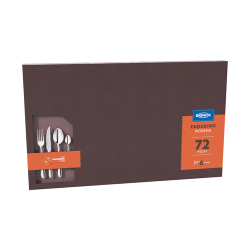 A linha Módena combina com estilo e funcionalidade, tornando cada refeição um momento único. O conjunto de talheres possui 72 peças, se adapta às reuniões mais formais e também aos momentos mais descontraídos. A linha de talheres Módena é feita de aço inoxidável, cabos arredondados e possuem um friso para trazer mais um detalhe à mesa. O faqueiro serve 12 pessoas e é composto por: Colher e garfo de mesa, faca de churrasco, colher e garfo de sobremesa, e colheres de café. Produzidos no Brasil, os talheres garante qualidade e durabilidade por muito mais tempo.