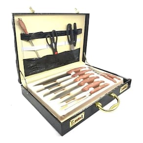 Itens Inclusos: 1 Faca cortadora 1 Faca Chef 1 Faca de Presunto 1 Faca de pão 1 Faca de escultura 1 Lâmina Bonny 1 Garfo de carne 1 Faca Pizza 1 Faca de Queijo 6 Garfo 6 Faca de bife 1 Tesoura de frango 1 Tesoura de cozinha 1 Amolador 1 Maleta Crocodile Marca: Não Informado Ean: 681131036771