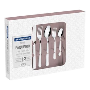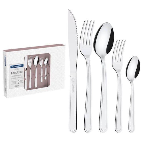 Faqueiro com Facas para Churrasco 60 peças Talheres de aço inox. Recomendações de uso Antes da primeira utilização, lave bem as peças e seque-as. Tenha cuidado ao manusear produtos cortantes e perfurantes e mantenha-os fora do alcance das crianças. Para limpeza dos talheres, recomenda-se lavar manualmente e secá-los antes de guardar. Para manter o aspecto visual do copo, lave com esponja macia, água, detergente neutro e evite quedas ou fortes impactos. Não leve o copo ao freezer, micro-ondas e máquina de lavar. Para descarte dos produtos e embalagens siga as orientações de reciclagem vigentes.
