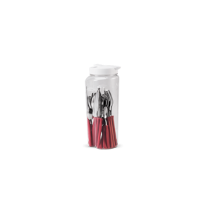 Colorida e informal, a linha Itaparica é perfeita para alegrar a sua mesa no dia-a-dia sem perder em qualidade e beleza. Feitas de aço inox polido e cabo em polipropileno, as peças podem ir à máquina de lavar. As facas são temperadas, não danificando pratos de porcelana. Este faqueiro de 20 peças contém o kit mais básico para refeições de até quatro pessoas: garfos e colheres de mesa, facas para churrasco e colheres de chá e sobremesa. Para combinar com a decoração da sua cozinha, o jogo está disponível na cor vermelha e, acompanha uma jarra super prática para servir bebidas deliciosas e refrescantes nas suas refeições.