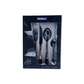 Faqueiro Conjunto Talheres Luxo Black 24 Peças Inoxidavel A mesa posta tornou-se uma tendência muito forte, e com isso alguns detalhes fazem toda a diferença na hora de fazer as suas refeições. O nosso Faqueiro Black tem tudo o que você precisa para tornar esse momento único, alinhando estilo e elegância. todo feito em aço inox garantindo a qualidade, a classe e a durabilidade. A cor Black tem o toque de classe e modernidade. você não precisa mais de uma ocasião especial para tornar sua refeição em um momento de satisfação. O kit contém 24 peças sendo 6 garfos de mesa, 6 facas de churrasco, 6 colheres de mesa e 6 colheres de chá. Suas dimensões são: Garfo de Mesa: Altura 21cm x Largura 2,5cmColher de Mesa: Altura 21cm x Largura 5cmFaca de Churrasco: Altura 23cm x Largura 2cmColher de Chá: Altura 15cm x Largura 3,5cm