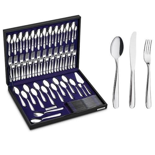 1. As peças são acondicionadas em um belo estojo de madeira MDF. 2. Totalmente feitas de aço inox, altamente duráveis, mantêm suas características originais, preservando a beleza, a higiene e a durabilidade do material. 3. Colheres com bojo em formato simétrico e bordas cuidadosamente arredondadas. 4. Garfos com dentes polidos na parte interna, com formato apropriado para a boca e bordas arredondadas para proporcionar maior conforto no uso. 5. Facas totalmente temperadas, que garantem maior durabilidade no fio de corte e maior resistência à corrosão, e por suas características de temperabilidade, não riscam as porcelanas. 6. Acabamento em brilho. 7. Serviço para mesa e sobremesa. 8. Podem ser lavadas diariamente na máquina de lavar louças.