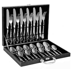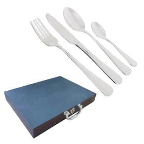 Faqueiro Inox Conjunto Talheres 24 Pçs Maleta Madeira Alça