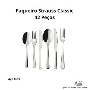 Leve elegância e praticidade à sua mesa com o Faqueiro Euro Home 42 Peças. Completo e refinado, é perfeito para almoços e jantares, seja em família ou em encontros com amigos. Destaques do ProdutoMaterial de Alta Qualidade: Produzido em aço inoxidável, garantindo durabilidade e resistência.Design Sofisticado: Cabos com acabamento elegante que valorizam a apresentação da sua mesa.Conjunto Ampliado: Serve até 6 pessoas, incluindo talheres adicionais para maior versatilidade.Embalagem de Veludo: Ideal para armazenamento ou como presente especial.Fácil de Limpar: Pode ser lavado na lava-louças.Conteúdo da Embalagem6 Garfos de Refeição6 Facas de Refeição com serrilha6 Facas de Refeição sem ponta6 Colheres de Refeição6 Colheres de Chá6 Garfos para BoloEspecificações: Cor: InoxQuantidade de Peças: 42Modelo: Strauss do Vendedor: 30 diasAdquira agora o Faqueiro Euro Home 42 Peças e impressione com uma mesa sofisticada e funcional