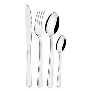Faqueiro Inox Tramontina Búzios 24 Peças Antes da primeira utilização, lave bem as peças e seque-as. Tenha cuidado ao manusear produtos cortantes e perfurantes e mantenha-os fora do alcance de crianças. Para maior durabilidade dos produtos, recomenda-se secar bem antes de guardar, mesmo após lavagem em máquina. Para descarte dos produtos e embalagens siga as orientações de reciclagem vigentes. Marca: Não Informado