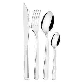Faqueiro Inox Tramontina Búzios 24 Peças Antes da primeira utilização, lave bem as peças e seque-as. Tenha cuidado ao manusear produtos cortantes e perfurantes e mantenha-os fora do alcance de crianças. Para maior durabilidade dos produtos, recomenda-se secar bem antes de guardar, mesmo após lavagem em máquina. Para descarte dos produtos e embalagens siga as orientações de reciclagem vigentes. Ean: 7907091421130