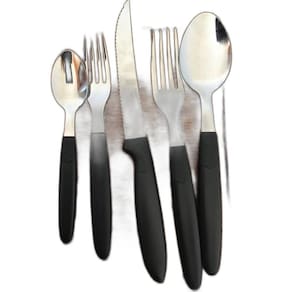 Contém: 6 - Facas para churrasco 5'' 6 - Garfos de mesa 6 - Colheres de mesa 6 - Garfos de sobremesa 6 - Colheres para chá.