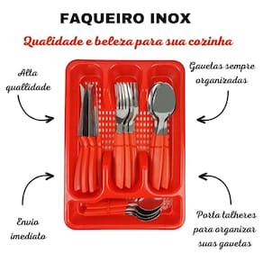 Fabricadas com aço inoxidável de alta resistência e polipropileno, as peças deste faqueiro garantem durabilidade excepcional e uma resistência admirável ao uso cotidiano. O conjunto inclui uma variedade de talheres, perfeitamente dimensionados para atender a todas as necessidades, desde o preparo de um churrasco saboroso até a degustação de sobremesas deliciosas. O porta talheres, com suas divisórias práticas, oferece uma solução elegante e eficiente para organizar e armazenar seus utensílios, assegurando uma cozinha sempre arrumada e convidativa.