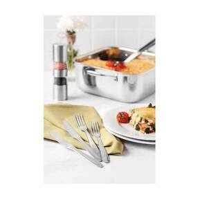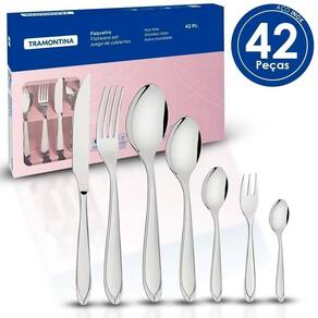 FAQUEIRO LAGUNA ACO INOX 42PCS TRAMONTINA Peças totalmente feitas de aço inox, altamente duráveis, preservando a beleza, a higiene e a durabilidade do material. Colheres com bojo em formato simétrico e bordas cuidadosamente arredondadas. Garfos com dentes polidos na parte interna, com formato apropriado para a boca e bordas arredondadas para proporcionar maior conforto na utilização.Facas totalmente temperadas, que garantem maior durabilidade no fio de corte e maior resistência à corrosão, e por suas características de temperabilidade, não riscam as porcelanas. Acabamento em brilho, com detalhes no cabo. ESPECIFICAÇOESMarca: TramontinaModelo: LagunaAltura: 05,50cmLargura: 37,00cmComprimento: 56,00cmPeso: 1,605KgRecomendaçõesDurante a lavagem, use apenas sabão ou detergente e uma esponja macia. Outros tipos de produtos como palha de aço, poderão riscar ou prejudicar o brilho dos talheres. Enxágue bem cada peça a fim de remover totalmente os resíduos dos produtos de limpeza pois, por serem abrasivos, podem prejudicar o inox. Sempre que possível, use água quente, pois renova o brilho do talher. Após a lavagem, enxugue imediatamente os talheres, caso contrário, as substâncias químicas da água (cloro) poderão causar manchas. Evite atrito entre os talheres durante o processo de lavagem e no armazenamento, para mantê-los sem riscos. Evite o contato das peças com superfícies quentes. Elas provocam a descoloração do produto. Não guarde os talheres em locais úmidos. A umidade também provoca manchas. Ao usar a lava-louça, recomendamos retirar os talheres logo que tenha terminado o ciclo ''enxaguar'', a fim de que sejam secados manualmente.