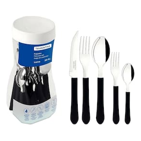 Faqueiro Leme 20 Peças com Lâminas em Aço Inox e Cabos em 100% Polipropileno para Uso Diário Preto