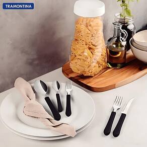 Complete suas refeições diárias com o faqueiro Tramontina Leme, ideal para servir até 4 pessoas com praticidade. Com lâminas em aço inox de alta resistência e cabos em 100% polipropileno, oferece durabilidade e manuseio confortável no dia a dia. As peças podem ser levadas à máquina de lavar louças, tornando a limpeza mais rápida e simples. Acompanha pote plástico para acondicionar os talheres ou organizar outros pequenos objetos na cozinha. Uma solução funcional para deixar a mesa mais organizada e com visual moderno na sua casa.