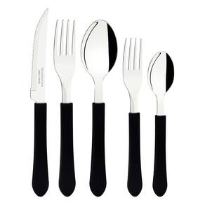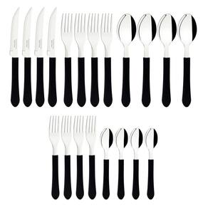 O Faqueiro Leme da Tramontina, modelo 23198018, é a escolha ideal para equipar sua cozinha com utensílios práticos e duráveis para o dia a dia. Este conjunto de 20 peças, com design moderno e cabos na cor preta, oferece a funcionalidade necessária para servir até quatro pessoas com elegância. As lâminas das facas são fabricadas em aço inox com tratamento térmico, garantindo maior durabilidade do fio. Garfos e colheres, também em aço inox, destacam-se pela alta resistência à corrosão e por não riscarem os pratos. Os cabos de polipropileno proporcionam um manuseio confortável e seguro.