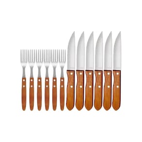 Faqueiro P/Churrasco Aço Inox Tramontina Jumbo 12 Peças Para saborear aquele churrasco especial com a família e os amigos, conte com o jogo para churrasco Tramontina Jumbo com lâminas em aço inox e cabos de madeira natural 12 peças. Desenvolvido para proporcionar praticidade e beleza à sua mesa, ele tem peças produzidas com lâminas em aço inox, onde as facas têm maior durabilidade em seu fio de corte devido ao tratamento térmico e os garfos contam com maior resistência devido à estampagem. Seus cabos são em madeira natural e contam com rebites de alumínio que os deixam com um belíssimo design. Escolha seu corte de carne preferido e compartilhe sua mesa com a Tramontina Informações Gerais Lâminas de aço inox. As lâminas das facas têm maior durabilidade do fio devido ao tratamento térmico. As lâminas dos garfos contam com maior espessura e uma estampagem do aço que garante maior resistência, evitando deformações. Cabos de madeira natural. Rebites de alumínio. Contém: 6-facas para Churrasco Jumbo 5 6-garfos Jumbo Especificações: Marca: Tramontina Modelo: Faqueiro P/Churrasco Aço Inox Jumbo 12 Peças Contém: 12 peças Material: Aço Inox Vendedor: 3 meses