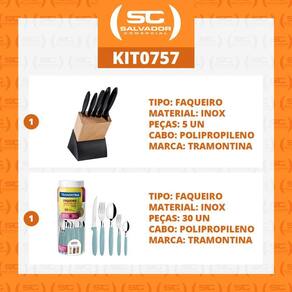 COMPONENTES DO KIT: 1 - Jogo de 6 PÇ 4 facas, 1 garfo e Suporte de Madeira Plenus - Tramontina 23498028 1 - Faqueiro Ipanema 30pç Menta Tramontina 23398/288