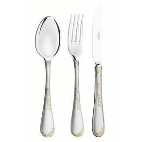 Faqueiro Renascença 101 Peças em Aço Inox e Detalhes em Ouro com Facas de Mesa e Estojo de Madeira Tramontina
