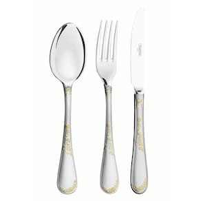 Faqueiro Renascença 130 Peças em Aço Inox e Detalhes em Ouro com Facas de Mesa e Estojo de Madeira Tramontina - Na sua casa