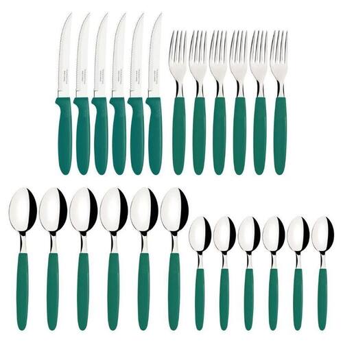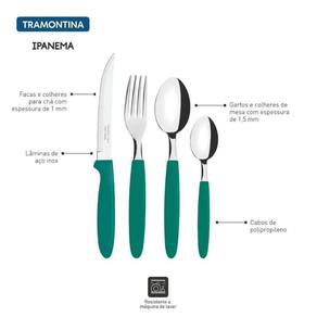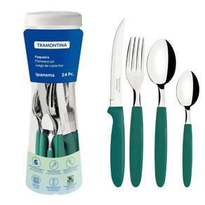 Com o Faqueiro Tramontina Ipanema com Lâminas em Aço Inox e Cabos de Polipropileno Verde Esmeralda com Pote Plástico 24 Peças, você irá deixar suas refeições ainda mais saborosas e cheias de estilo Ele tem peças produzidas com lâminas resistentes e duráveis em aço inox e cabos em polipropileno que proporcionam um manuseio confortável e suave. Ele vem na cor verde esmeralda e vai levar muito mais cor para sua mesa, deixando sua mesa muito mais agradável. Além disso, suas peças são muito fáceis de limpar e podem ir à máquina de lavar louças diariamente. O faqueiro acompanha também um pote plástico que lhe auxilia na hora de guardar e armazenar suas peças ou alimentos