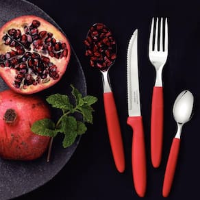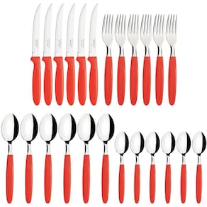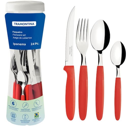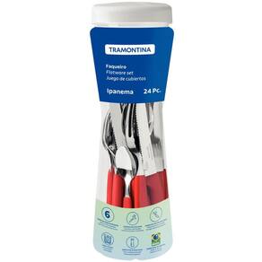 Faqueiro Tramontima Ipanema Vermelho Jogo de Talheres 24 peças Pote Plástico Aço Inox.