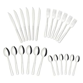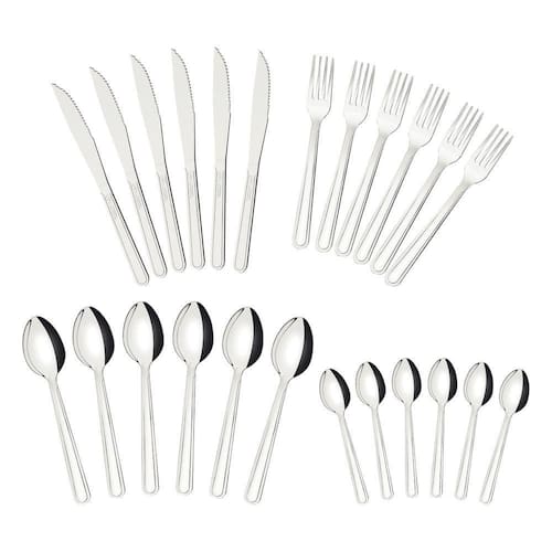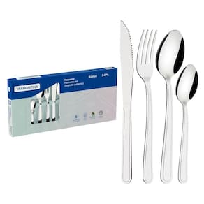 Mais Informações - Os talheres são produzidos em aço inox que mantém a beleza, a higiene e a durabilidade.As lâminas das facas têm maior durabilidade do fio devido ao tratamento térmico.Os garfos e colheres garantem maior resistência devido a espessura do aço e a estampagem das lâminas.Podem ir à máquina de lavar louças facilitando seu dia a dia.