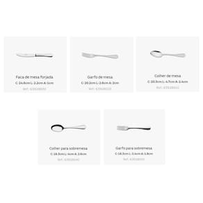 - Com 30 peças em aço inox de alta qualidade e facas de mesa forjadas, ele combina elegância e durabilidade, proporcionando o acabamento em brilho que impressiona em qualquer ocasião.
