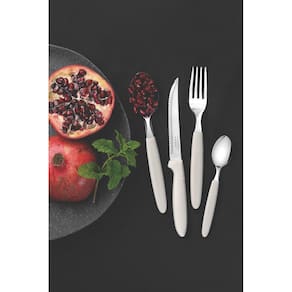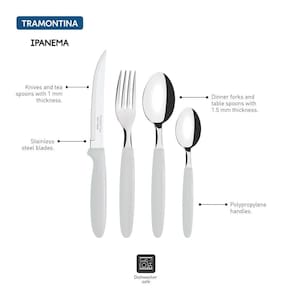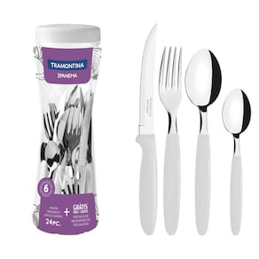 Faqueiro Tramontina Ipanema com Lâminas em Aço Inox e Cabos de Polipropileno Branco com Pote Plástico 24 Peças Se você também ama ver tudo branquinho vai adorar o Faqueiro Tramontina Ipanema com Lâminas em Aço Inox e Cabos de Polipropileno Branco com Pote Plástico 24 Peças. São lindos talheres com cabo de polipropileno na cor branca que vão acompanhar todas as refeições do seu dia a dia. As peças são muito resistentes e duráveis, devido a espessura das lâminas em aço inox o que permite que você as utilize do café da manhã ao jantar. Este faqueiro acompanha um lindo pote. Seu desenho é perfeito para guardar macarrão, mas ele pode ser utilizado para acondicionar o que quiser. São muitas vantagens não é mesmo?