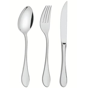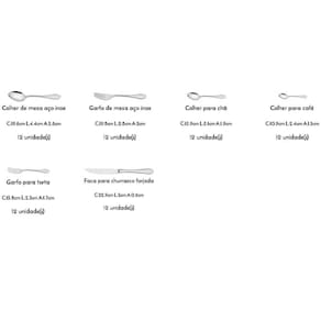 CONTEÚDO DO JOGO - 12 Colher de mesa aço inox - 12 Colher para café - 12 Colher para chá - 12 Faca para churrasco forjada - 12 Garfo de mesa aço inox - 12 Garfo para torta
